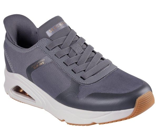 Just Slip In™ to versatile sporty design wearing Skechers Street™ Hands Free Slip-ins®: Tres-Air UNO – Necessairy Comfort. Designed with our Heel Pillow®, this athletic inspired slip-on features a sleek mesh upper with hotmelt overlay details, stretch laces, Skechers Air-Cooled Memory Foam® insole, and a Skech-Air® triple window visible airbag midsole.